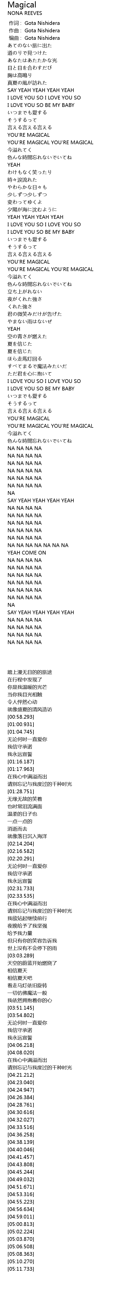 | [02:33.535] | YOU'RE MAGICAL YOU'RE MAGICAL |