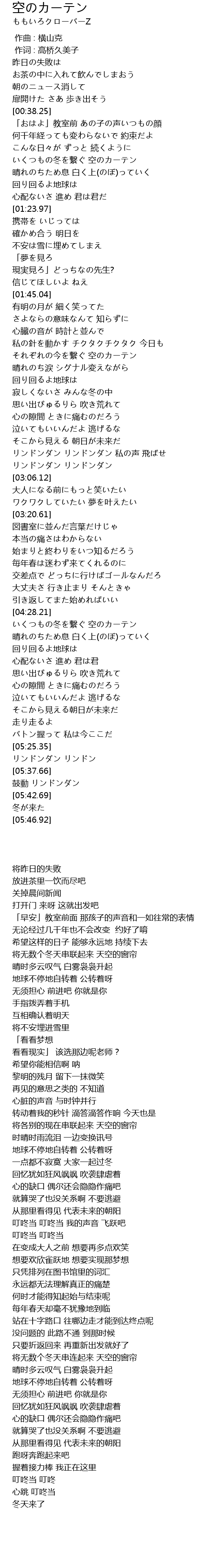 | [02:13.35] | それぞれの今を繋ぐ 空のカーテン |