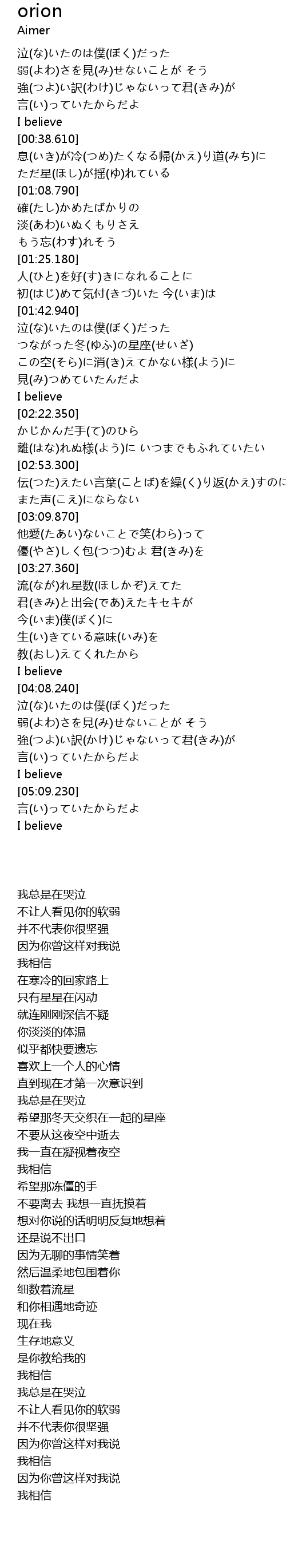 | [03:31.210] | 流(なが)れ星数(ほしかぞ)えてた |