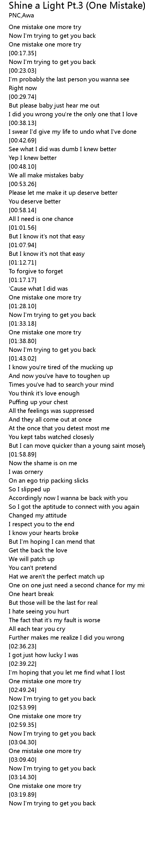 | [02:19.57] | One on one just need a second chance for my mistake |