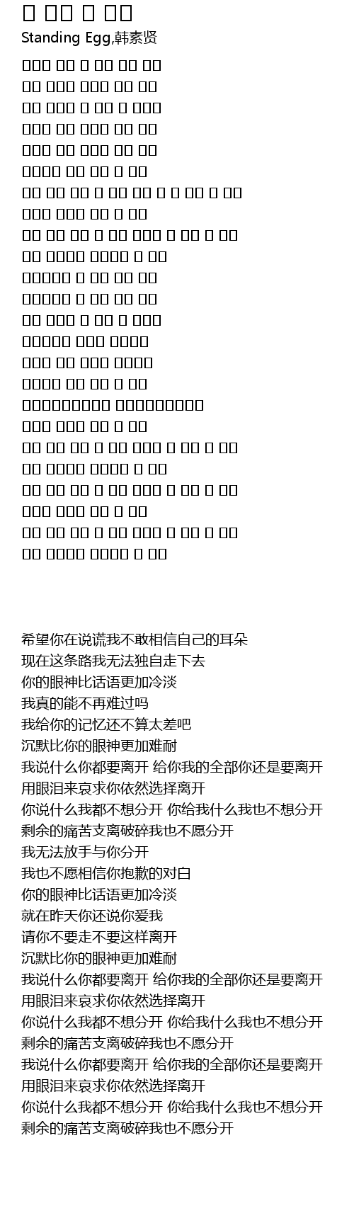 [00:42.910] 어떤 말을 해도 넌 이별 모든 걸 다 줘도 넌 이별