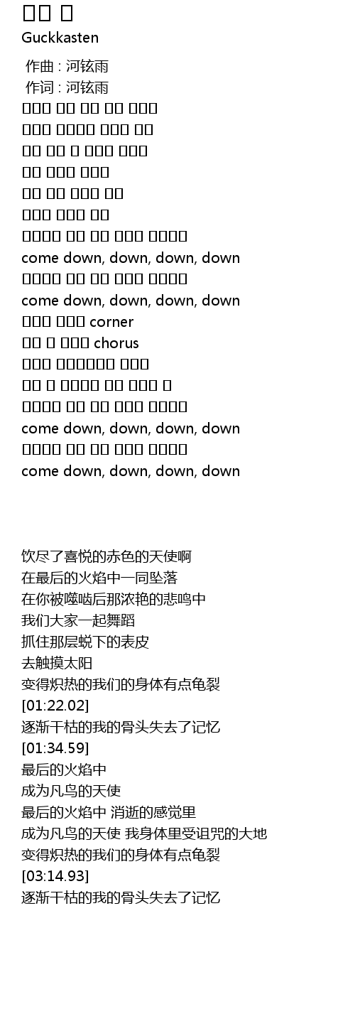 | [00:38.84] | 기쁨을 마셔 버린 붉은 천사야 |