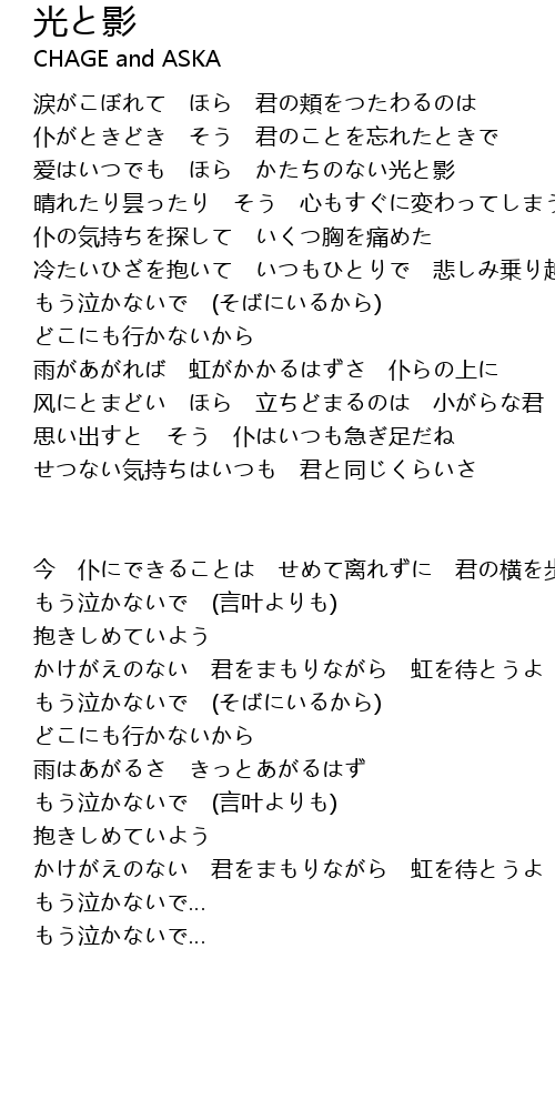 | かけがえのない 君をまもりながら 虹を待とうよ | |