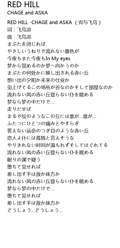| [00:00.00] | RED HILL -CHAGE and ASKA (克与飞鸟) |