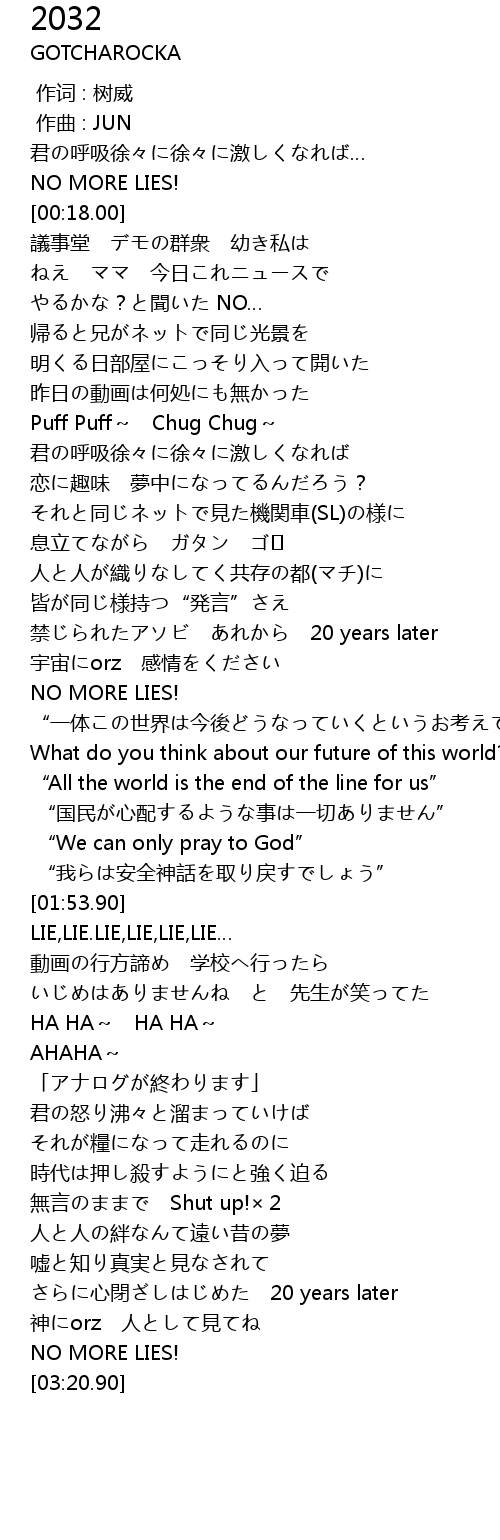 | [02:06.20] | LIE,LIE.LIE,LIE,LIE,LIE… |