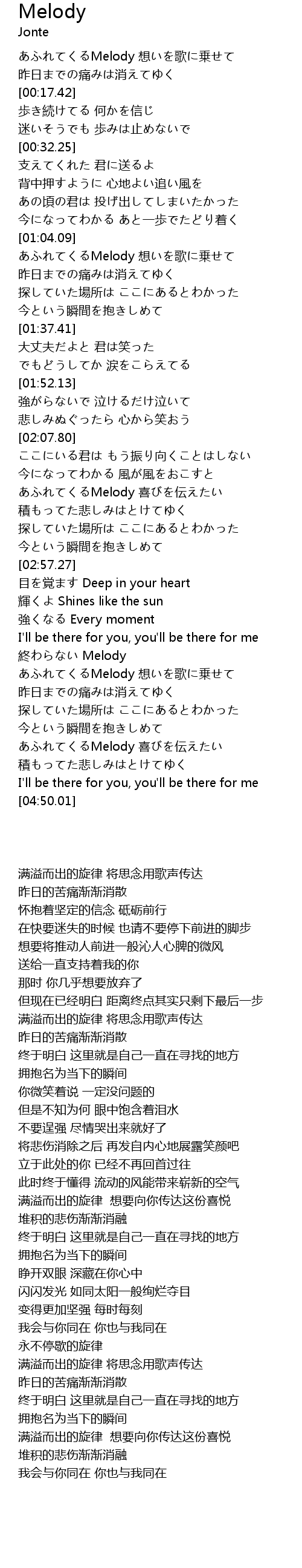 | [00:00.00] | あふれてくるMelody 想いを歌に乗せて |