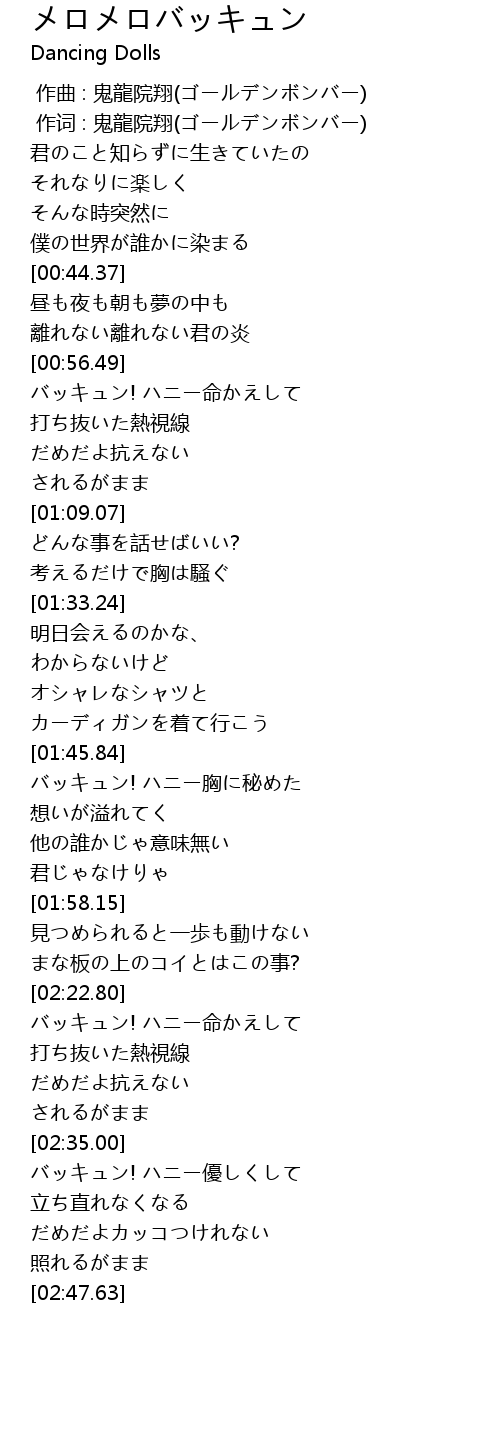 | [02:35.29] | バッキュン! ハニー優しくして |