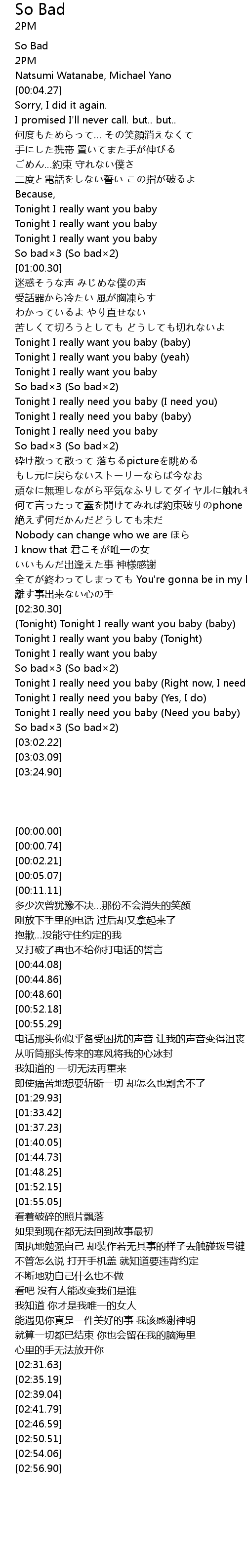 | [02:46.59] | Tonight I really need you baby (Right now, I need you) |