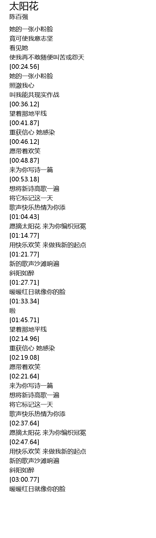 | [03:02.03] | 暖暖红日就像你的脸 |