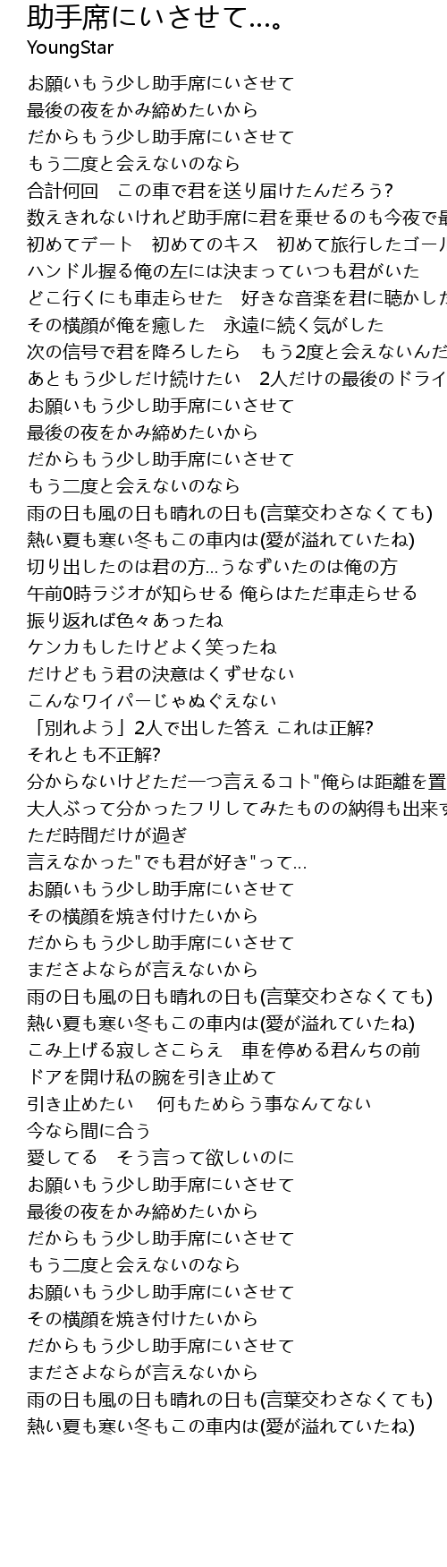 | [00:20.54] | お願いもう少し助手席にいさせて |