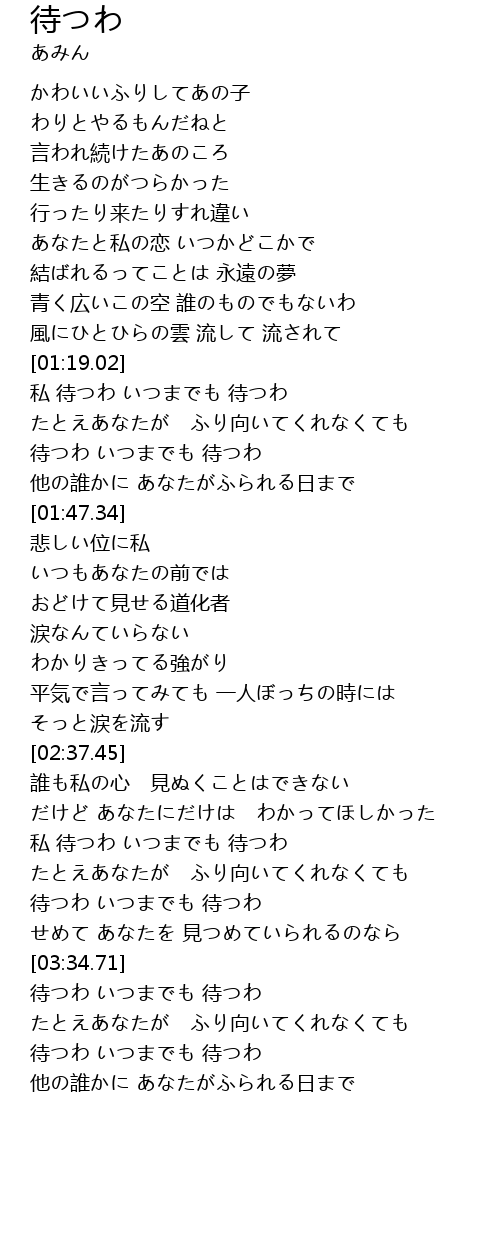 私 待つわ いつまでも 待つわ |