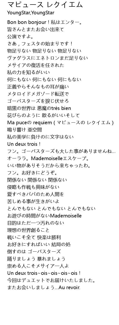 | [01:08.31] | Ma puceの requiem(マピュースの レクイエム) |