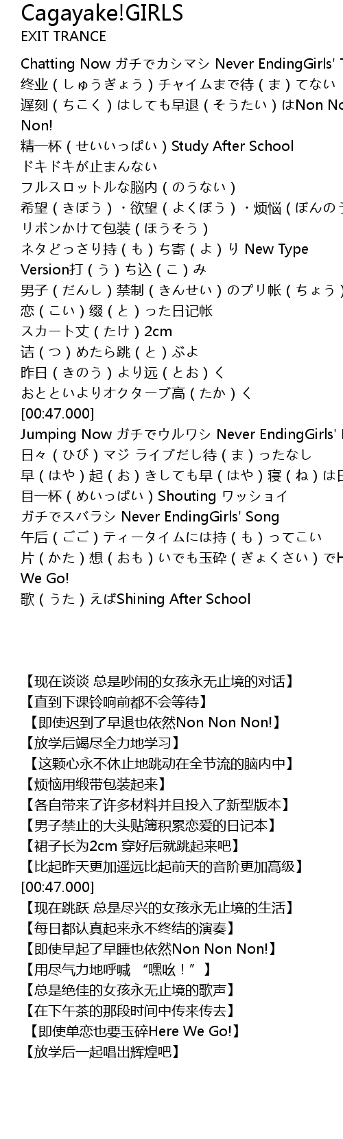 | [01:29.936] | Jumping Now Never EndingGirls' Life |