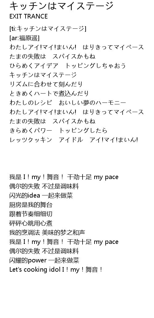 | [00:41.21] | レッツクッキン アイドル アイ!マイ!まいん! |