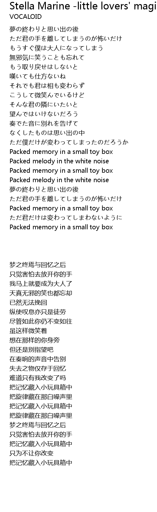 | [03:21.925] | Packed melody in the white noise |