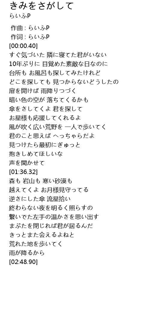 | [00:00.013] | 作词 : らいふP |