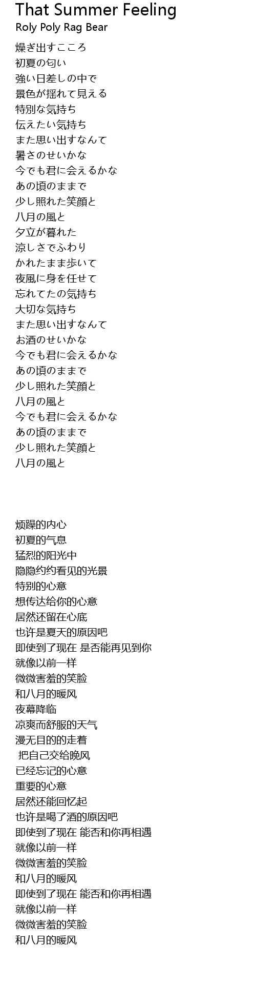 That Summer Feeling Lyrics