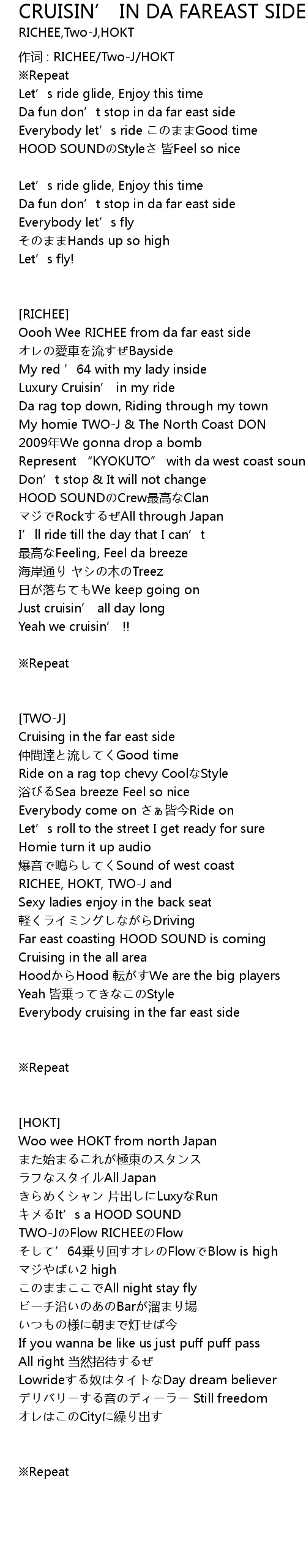 | HOOD SOUNDのStyleさ 皆Feel so nice | |