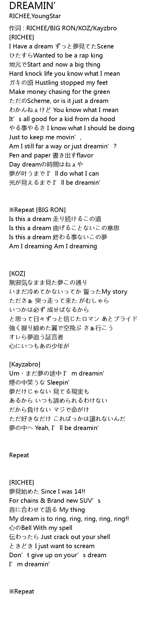 | 作词 : RICHEE/BIG RON/KOZ/Kayzbro | |