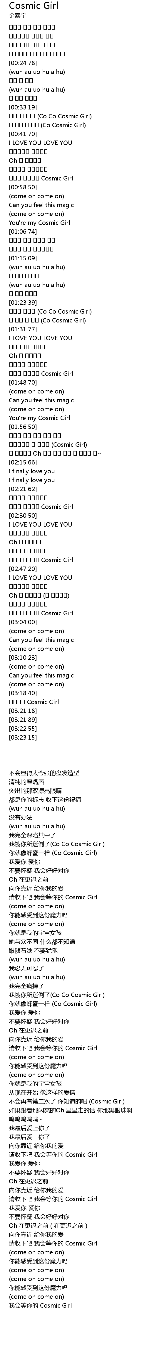 | [03:19.07] | 기다릴게 Cosmic Girl |