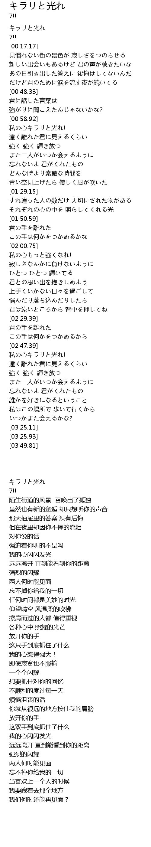 | [02:48.55] | 私の心キラリと光れ! |