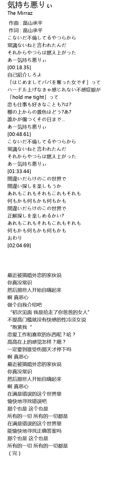 | Song | 気持ち悪りぃ |