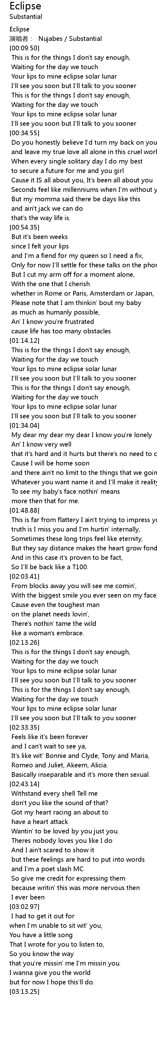 | [00:20.18] | Your lips to mine eclipse solar lunar |
