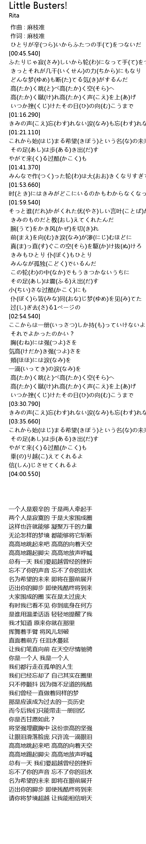 | [01:47.810] | みんなで作(つく)った轮(わ)は大(おお)きくなりすぎて |