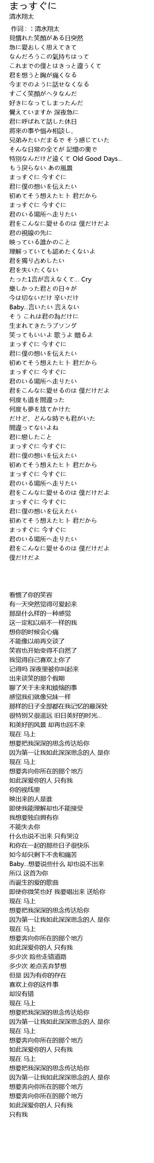 | [00:00.00] | 作词 : ︰清水翔太 |