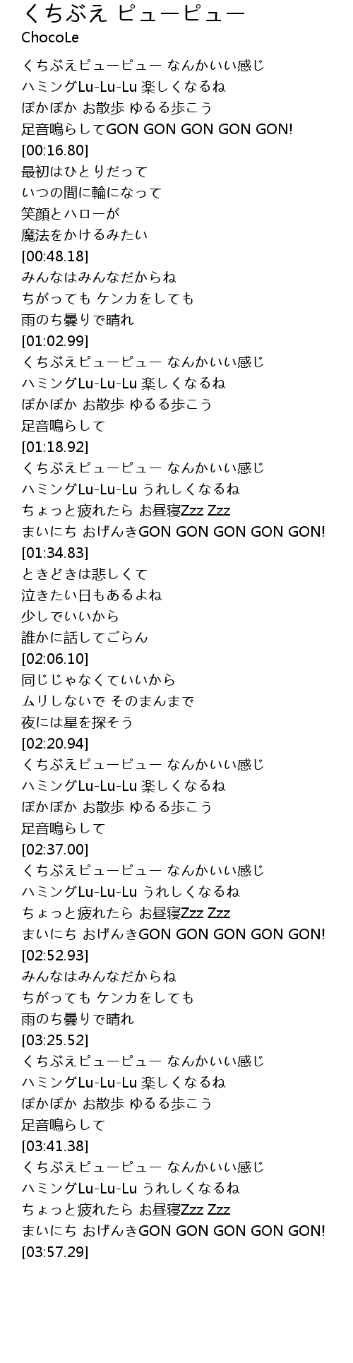 | [00:01.43] | くちぶえピューピュー なんかいい感じ |