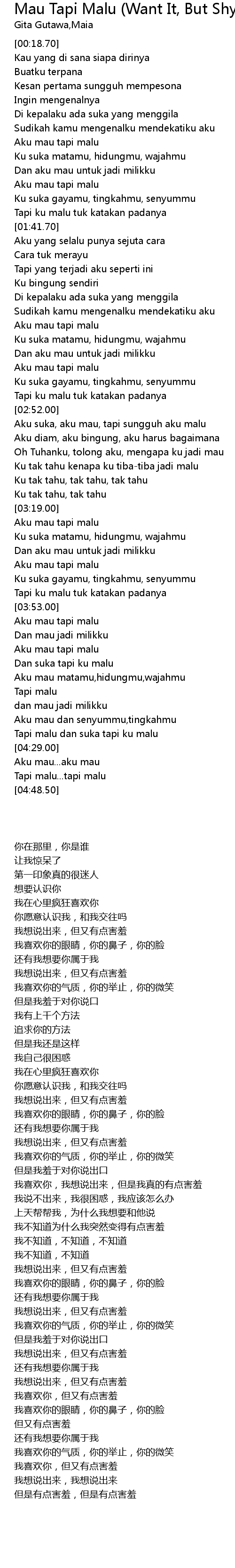 Tapi malu dan suka tapi ku malu |