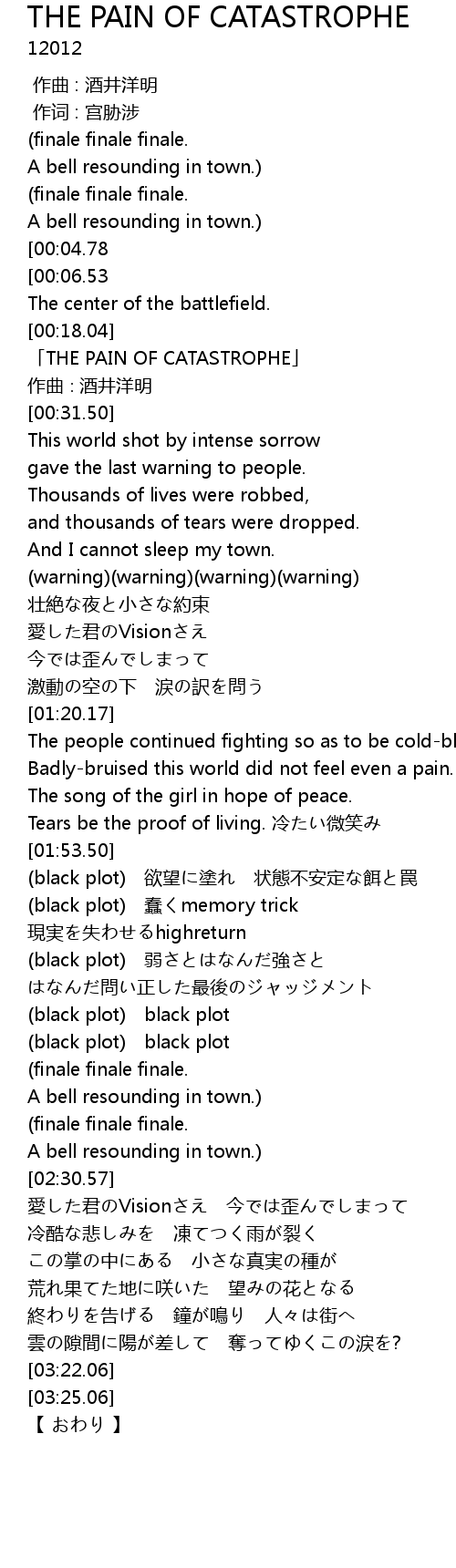 | [00:20.50] | 「THE PAIN OF CATASTROPHE」 |
