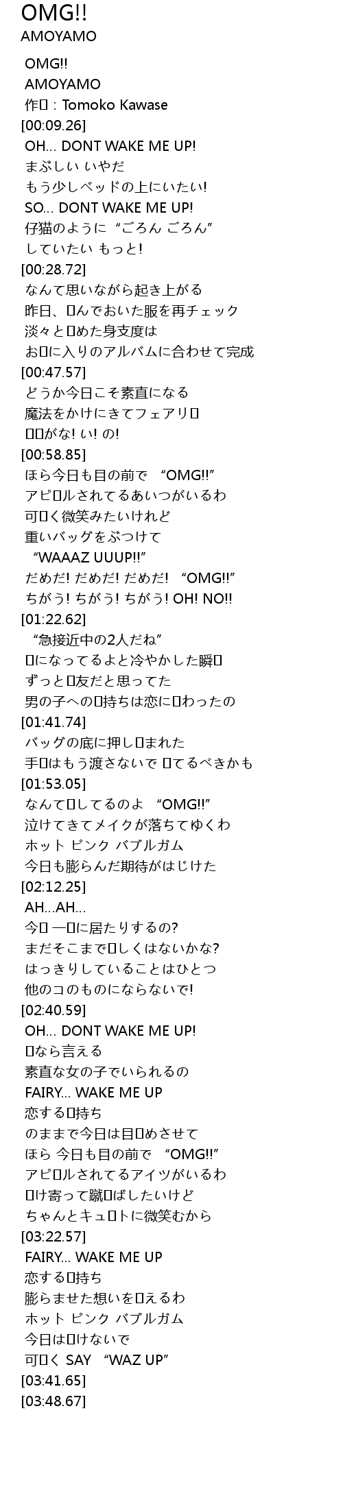| [00:59.21] | ほら今日も目の前で “OMG!!” |