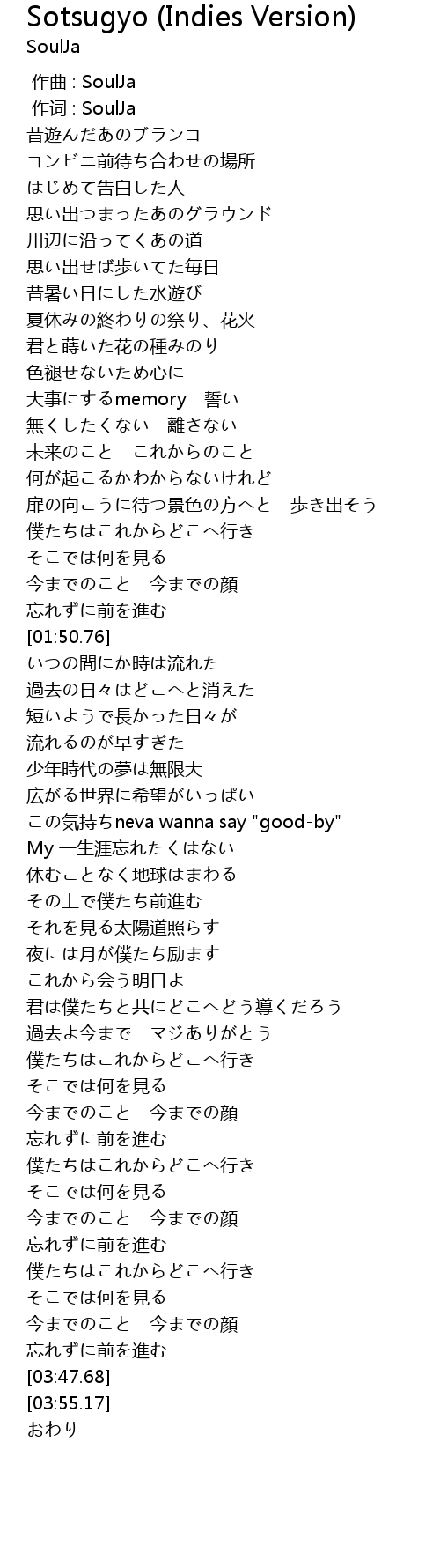 | [04:00.07] | おわり |
