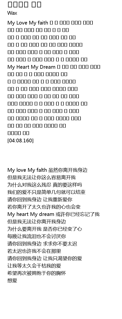 My Love My faith 넌 내 곁에서 멀어져 가지만 |
