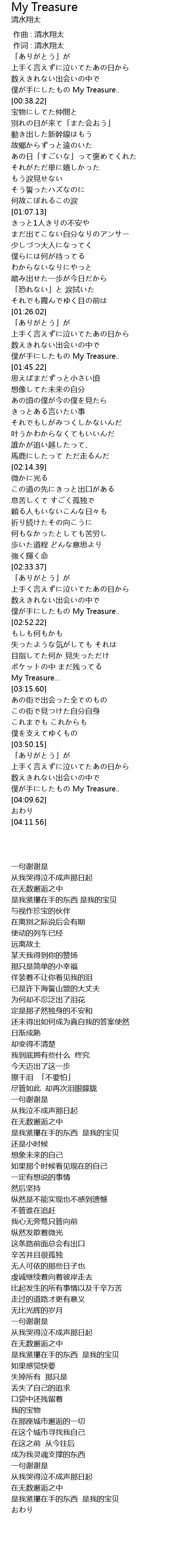 | [00:33.63] | pú shǒu My Treasure.. |