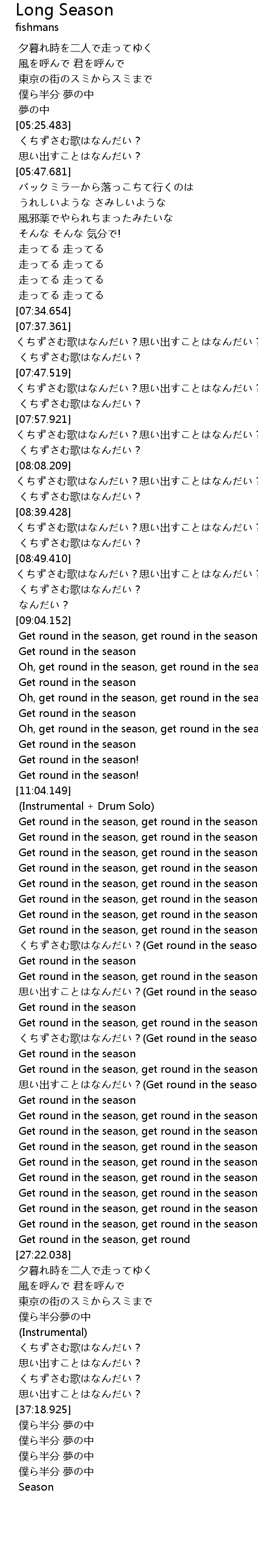 | [26:19.482] | くちずさむ歌はなんだい?(Get round in the season) |