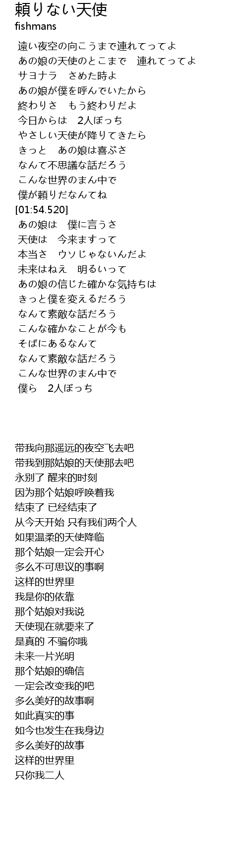 | [00:38.678] | あの娘の天使のとこまで 連れてってよ |