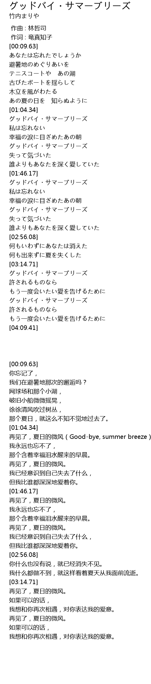 | [03:33.38] | グッドバイ・サマーブリーズ |