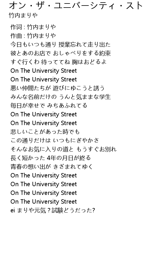 | Song | オン・ザ・ユニバーシティ・ストリート |