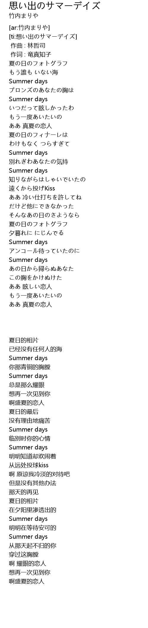 | [ti:想い出のサマーデイズ] | |