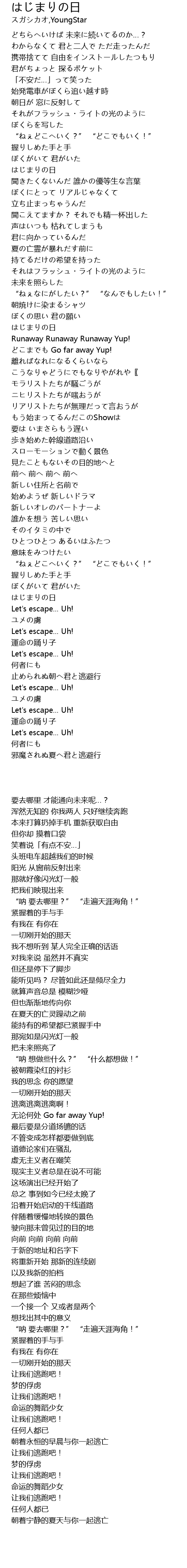 | [04:00.250] | 止められぬ朝へ君と逃避行 |