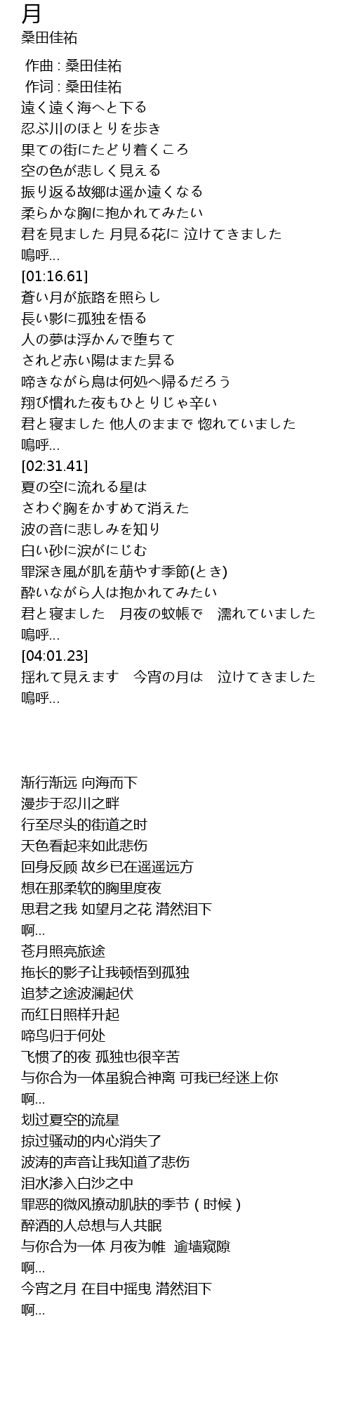 | [00:57.67] | 君を見ました 月見る花に 泣けてきました |