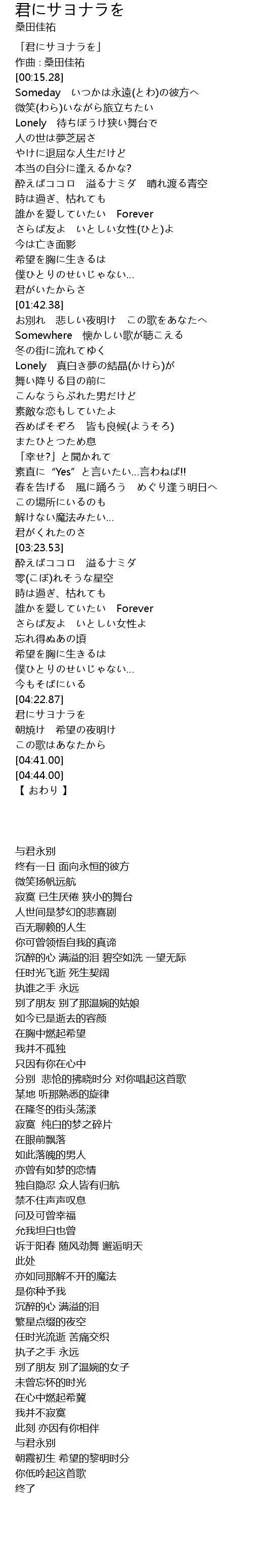 | [01:50.67] | お別れ 悲しい夜明け この歌をあなたへ |