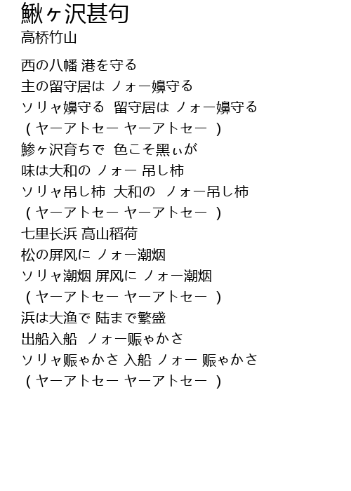 | [02:16:541] | 浜は大渔で 陆まで繁盛 |