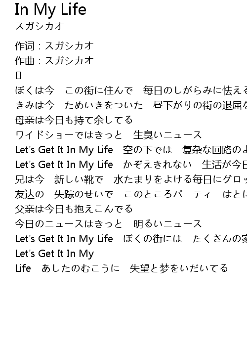 | Let's Get It In My Life あしたのむこうに 失望と梦をいだいてる |