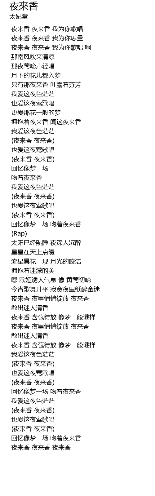 | [03:06.570] | 夜来香 夜来香 夜来香 |