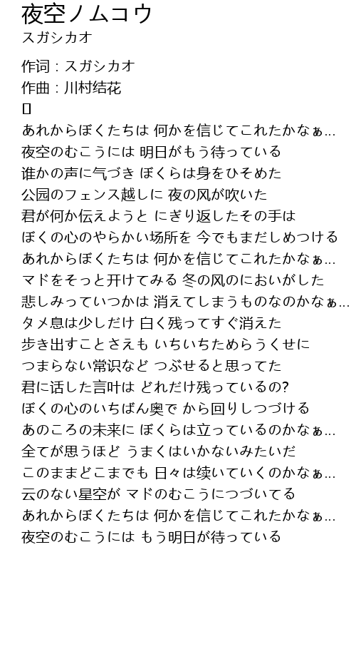 | Song | 夜空ノムコウ |
