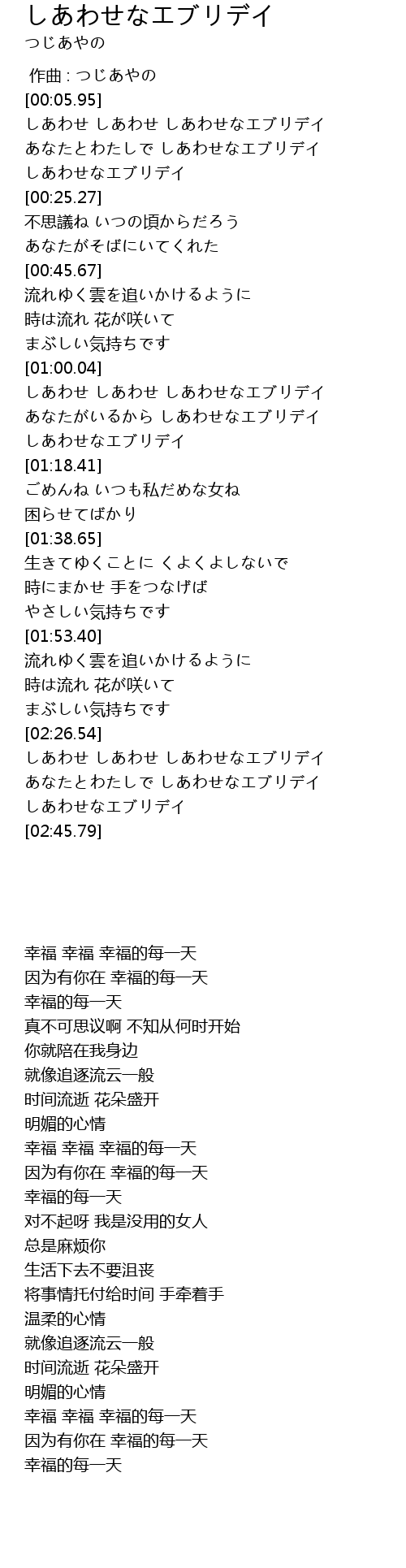 しあわせ しあわせ しあわせなエブリデイ |