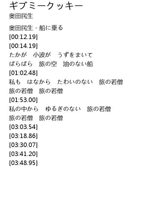 | [00:00.00] | 奥田民生 - 船に乗る |